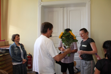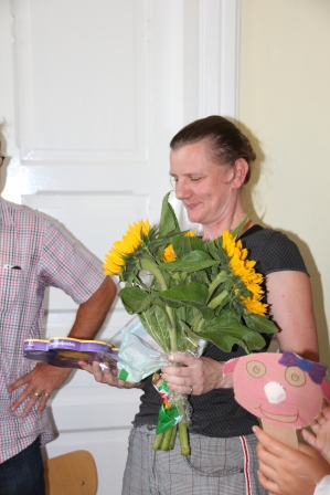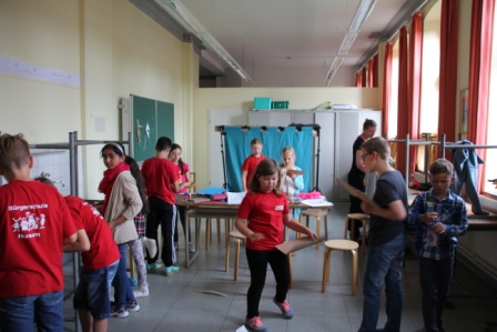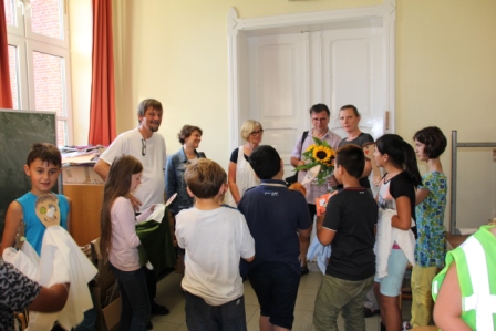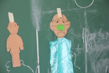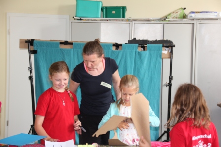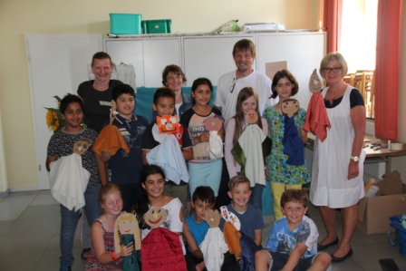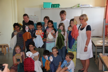 Unter fachkundiger Anleitung von Puppenspielerin Christiane Klatt vom Berliner Theater "Puppen etc" wurde von allen 4. Klassen in 3 Tagen fleißig verschiedene Puppen hergestellt und auch Puppenspiele einstudiert und vorgeführt. Ermöglicht wurde der Workshop durch die Finanzierung des Lions-Clubs Husum-Uthlande und dem Förderkreis Pole Poppenspäler. Am Freitag besuchten Club-Präsidentin Monika Möller (5 v.l.) und Birgit Empen (r) vom Förderkreis die 4c um die Arbeiten zu bestaunen.